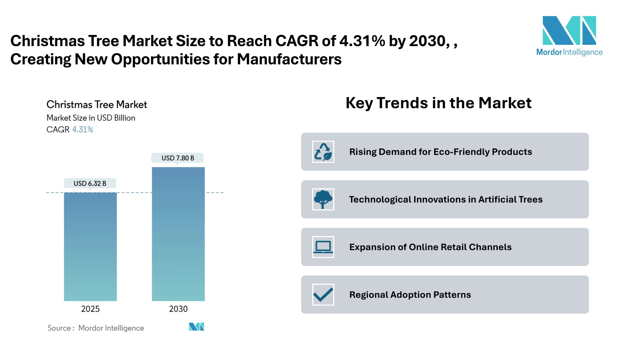 Mordor Intelligence has published a new report on the “Christmas Tree Market” offering a comprehensive analysis of Size, Share, Trends, Growth Drivers & Future Projections.