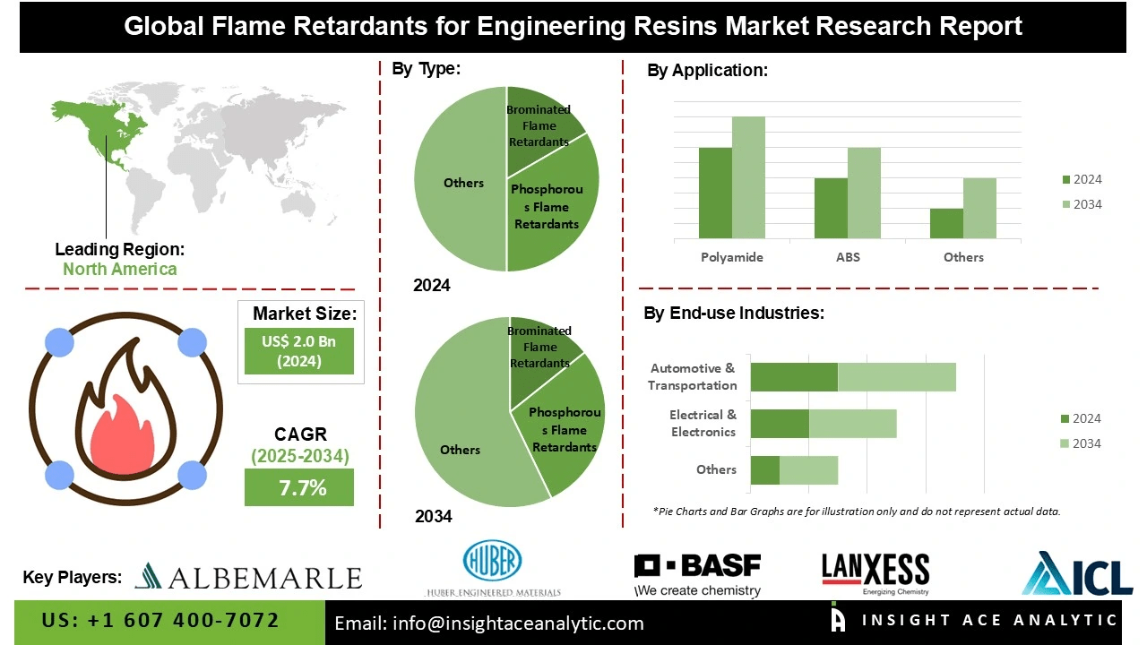 InsightAce Analytic Pvt. Ltd. announces the release of a market assessment report on the “Global Flame Retardants for Engineering Resins Market Size, Share & Trends Analysis Report By Type (Brominated Flame Retardants, Phosphorous Flame Retardants, and Other Types), By Application (Polyamide, ABS, PET & PBT, Polycarbonate, PC/ABS Blends, and Other Applications), By End-use Industries (Electrical & Electronics, Automotive & Transportation, and Other End-use industries),-Market Outlook And Industry Analysis 2034″